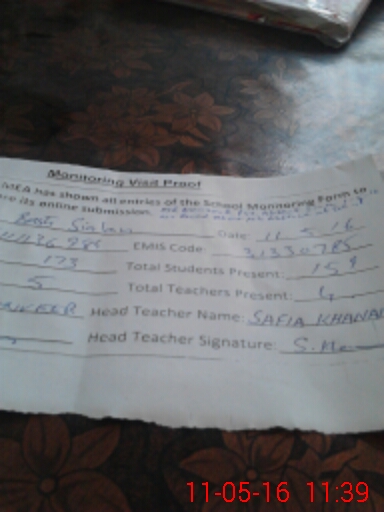 | Remarks (Use Separate Page if Required): MR MANZOOR PST ABSENT SINCE 01 05 2016 NO RECORD REGARDING HIS ABSENCE AVAILABLE AT SCHOOL | |||||