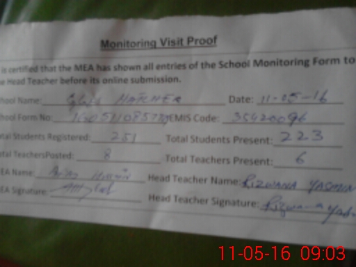 | Certified that this School was Inspected by the Undersigned MEA/DMO Today and the Information Stated Above is as Per Record. | |||||