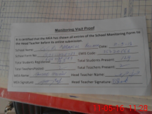| Attendance Register | Head Teacher | MEA with School | Visit Proof |