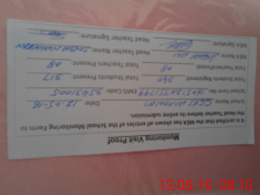 | Attendance Register | Head Teacher | MEA with School | Visit Proof |