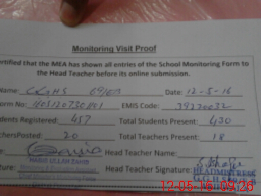 | EMIS Code: 39220032 | Name of School: GGHS 69 EB ARIF WALA | |||