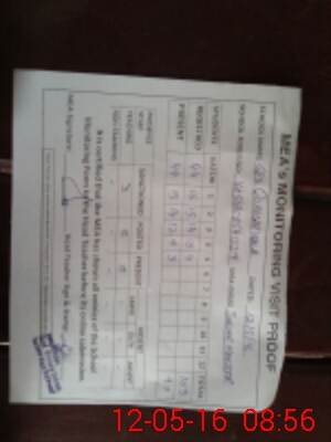 | Monitoring Date: 12-05-2016 | Start Time: 12-05-2016 08:20 AM | End Time: 12-05-2016 08:58 AM | Name of MEA: Z.**** SA**** MA**** | |