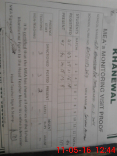| Certified that this School was Inspected by the Undersigned MEA/DMO Today and the Information Stated Above is as Per Record. | |||||