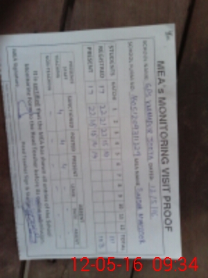 | Attendance Register | Head Teacher | MEA with School | Visit Proof |