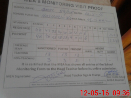 | Certified that this School was Inspected by the Undersigned MEA/DMO Today and the Information Stated Above is as Per Record. | |||||