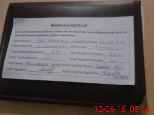 | Certified that this School was Inspected by the Undersigned MEA/DMO Today and the Information Stated Above is as Per Record. | |||||