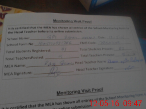 | Attendance Register | Head Teacher | MEA with School | Visit Proof |