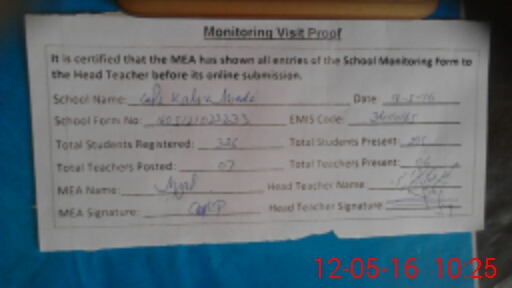 | Certified that this School was Inspected by the Undersigned MEA/DMO Today and the Information Stated Above is as Per Record. | |||||