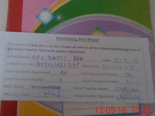 | EMIS Code: 32320211 | Name of School: GPS BASTI ARA | |||