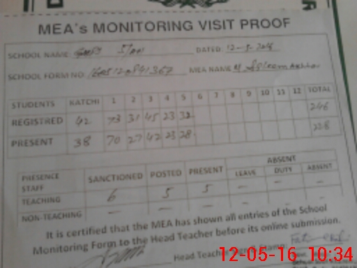 | Attendance Register | Head Teacher | MEA with School | Visit Proof |