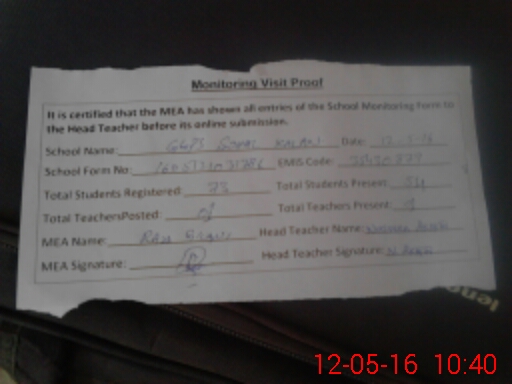 | Attendance Register | Head Teacher | MEA with School | Visit Proof |