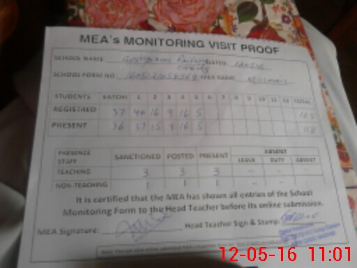 | Attendance Register | Head Teacher | MEA with School | Visit Proof |