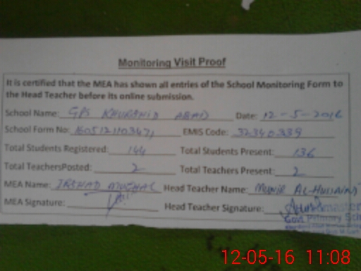 | EMIS Code: 32340339 | Name of School: GPS KHURSHID ABAD (KOT RATTA) | |||