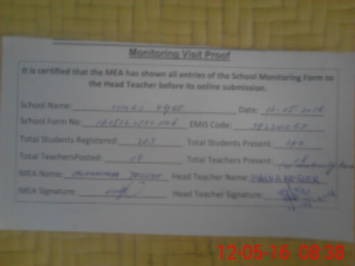 | Certified that this School was Inspected by the Undersigned MEA/DMO Today and the Information Stated Above is as Per Record. | |||||
