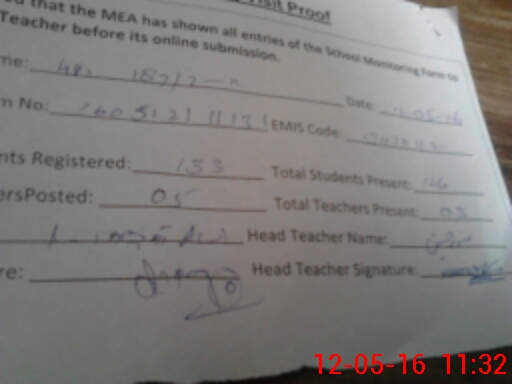 | Attendance Register | Head Teacher | MEA with School | Visit Proof |