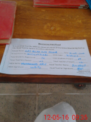 | EMIS Code: 31331016 | Name of School: GPS ALLAH DITA PAHOOR | |||
