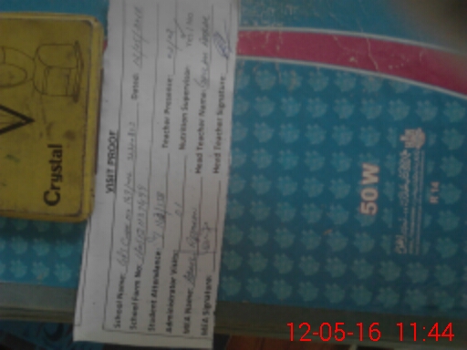 | School Visited by School Health & Nutrition Supervisor (No. of Visits) | 1 | Name1: | SHUMAILA KOKAB | Name2: | NIL |