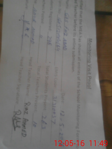 | EMIS Code: 31310037 | Name of School: GES FAIZ ABAD KHANPUR | |||