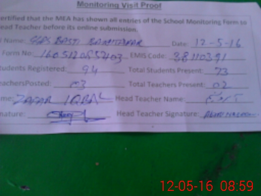 | Certified that this School was Inspected by the Undersigned MEA/DMO Today and the Information Stated Above is as Per Record. | |||||