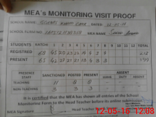 | Attendance Register | Head Teacher | MEA with School | Visit Proof |