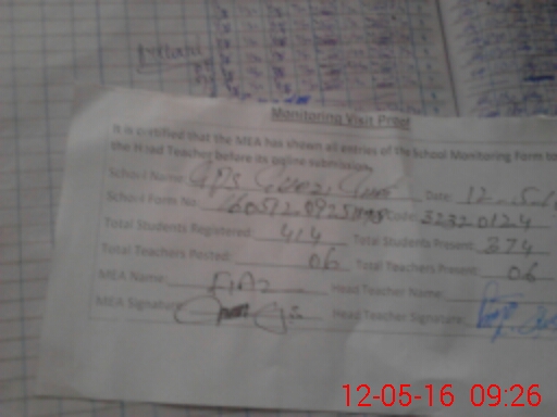 | Attendance Register | Head Teacher | MEA with School | Visit Proof |