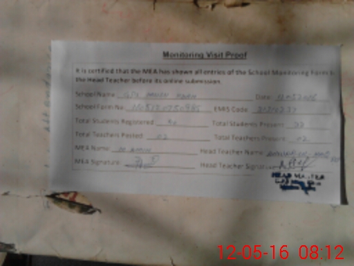| Attendance Register | Head Teacher | MEA with School | Visit Proof |