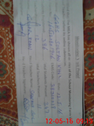 | EMIS Code: 38310019 | Name of School: GGHS SULTAN KHEL | |||